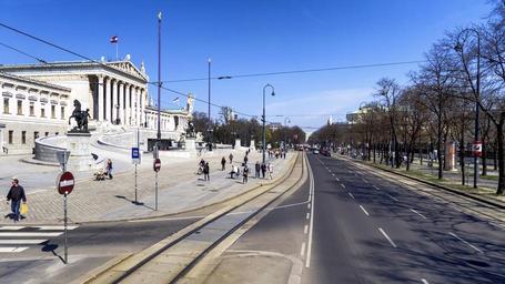 Keywords: vienna austria city people buildings architecture cities urban trees street sidewalk tracks outside sky clouds