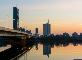 Keywords: vienna austria danube rich bridge building city architecture sunrise melia