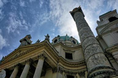 Keywords: vienna church architecture saint-charles monument old town austria buildings against the light column