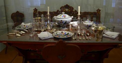 | Keywords: Vienna Kaiserliches Hofmobiliendepot 24042013 14.jpg en Rustic furniture made for the dairy farm of Empress Elisabeth at Schönbrunn with dinner and dessert service both made in Hungary around 1895 The service is from Hollohaza Cutlery by Arthur Krupp around 1895 2013-04-24 11 26 07 own Vassil cc-zero Uploaded with UploadWizard Imperial Furniture Collection-interior Empress Elisabeth of Austria Berndorfer Metallwarenfabrik Dining tables | ||||