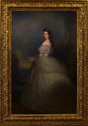 | Keywords: Vienna Kaiserliches Hofmobiliendepot Elisabeth of Austria F X Winterhalter 24042013 10.jpg Artwork en Empress Elisabeth of Austria in state robes with diamond stars in her hair this painting is a copy by Winterhalter himself from the original displayed in the Vienna Hofburg Painted in 1864-1865 Oil on canvas Kaiserliches Hofmobiliendepot Vienna own Author Vassil Date 2013-04-24 11 06 29 cc-zero Empress Elisabeth in Courtly Gala Dress with Diamond Stars Winterhalter Imperial Furniture Collection-interior Copies of portrait paintings Painting frames Uploaded with UploadWizard |