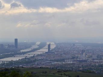 Keywords: vienna sky blocks danube cityscape austria capital steam fog cloudy