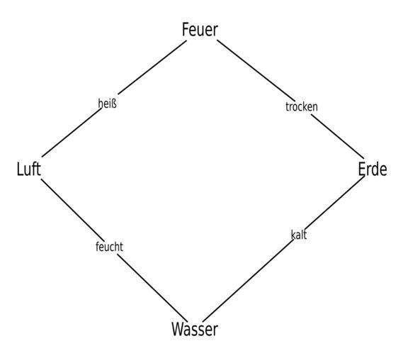 Keywords: Vier-elemente-theorie.svg This sketch shows the connections of the four elements Fire Earth Water and Air with their main attributes This is after Aristotle created in Inkscape 2006-05-30 Carsten Niehaus Four elements