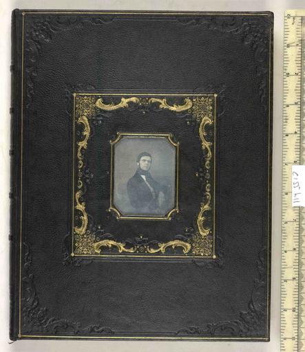 | Keywords: Vies des Saints nouvellements ecrites par une reunion d'ecclesiastiques et d'ecrivains catholiques sous la direction religieuse du Comite nomme par l'Archeveque de Paris. - Upper cover (c155h11).jpg Style Panel design; Caption Upper cover; Colour Black; Edge Unspecified exhibition history Decorative Technique Tooled in blind Tooled in gold Photograph; Cover Material Goatskin includes morocco turkey etc Part of the Charles Ramsden Collection of Signed Bindings Design incorporates daguerreotype A positive photographic portrait printed on glass has been set in the front cover Macchi states; second quarter century Paris bound by Maynard A deaf and dumb binder a sample of whose work c 1844 is illustrated in Maggs Bros Ltd Catalogue 661 222 He was possibly a pupil of Lesne who taught binding at the Deaf and Dumb Institute towards the end of his life C Ramsden French bookbinders p 138 object history Text 15c; Paris; Unspecified object type Cc-zero place of creation Binding France place of discovery Unspecified British Library image http //www bl uk/catalogues/bookbindings/LargeImage aspx RecordId 020-000003334 ImageId ImageId 41272 Copyright BL Vies des Saints nouvellements ecrites par une reunion d'ecclesiastiques et d'ecrivains catholiques sous la direction religieuse du Comite nomme par l'Archeveque de Paris Uploaded with GWToolset Vies des Saints nouvellements ecrites par une reunion d'ecclesiastiques et d'ecrivains catholiques sous la direction religieuse du Comite nomme par l'Archeveque de Paris - Upper cover c155h11 http //www webarchive org uk/bldatasets/bindings/5788_4 jpg 19th-century bookbinding Bookbinding British Library Bookbindings |