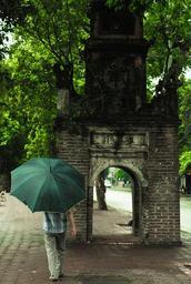 Keywords: vietnam hanoi hoankiem lake summer day man green men walk rain after rain wet