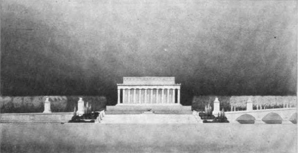| Keywords: View of the approved 1926 plan for Arlington Memorial Bridge eastern approaches at the Lincoln Memorial.jpg en Black-and-white watercolor of the eastern approaches of the Arlington Memorial Bridge across the Potomac River in Washington D C in the United States The approaches were designed by the architectural firm of McKim Mead White The lead designer was William Mitchell Kendall The view is looking directly west at the water line of the Potomac River at the Lincoln Memorial The entrance to the Rock Creek and Potomac Parkway is to the left indicated by two square columns The Watergate flanked by plantings is in the center of the image with a low fountain shown in the plaza to be created in front of the memorial Two square columns mark the entrance to the Arlington Memorial Bridge which can be seen to the right This design was approved but budgetary civil engineering and other concerns led to its radical revision http //hdl handle net/2027/mdp 39015071561925 urlappend 3Bseq 80 Commission of Fine Arts Report of the United States Commission of Fine Arts July 1 1921 to June 30 1925 Washington D C U S Government Printing Office 1926 p 52 1926 PD-USGov Arlington Memorial Bridge Watergate Steps 1926 in Washington D C |