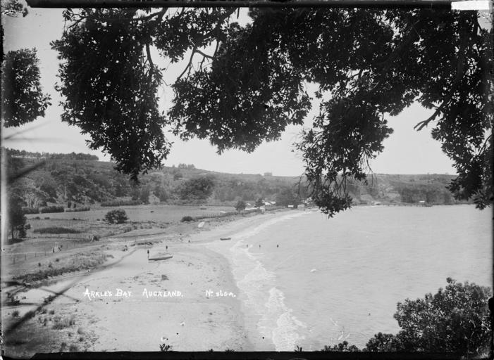 | Keywords: blackandwhite monochrome outdoor plant tree black and white View of Arkles Bay looking north along the beach to Whangaparaoa Peninsula. In the foreground are children playing in the creek near to where it runs into the sea. Houses can be seen on the beachfront in the distance as well as the jetty. Houses can also be seen on the hill overlooking the beach in the far distance. Taken by William A Price in early 1900s. Inscriptions: Inscribed - Photographer's title on negative -bottom left: Arkle's Bay. Auckland. No 865A.. William Archer Price lived and practised in Queen Street, Northcote, 1909-1910. Source: New Zealand Post Office directories Quantity: 1 b&w original negative(s). Physical Description: Dry plate glass negative 4.5 x 6.5 inches View of Arkles Bay, Auckland. Price, William Archer, 1866-1948 :Collection of post card negatives. Ref: 1/2-001409-G. Alexander Turnbull Library, Wellington, New Zealand. natlib.govt.nz/records/23014319 View of Arkles Bay looking north along the beach to Whangaparaoa Peninsula. In the foreground are children playing in the creek near to where it runs into the sea. Houses can be seen on the beachfront in the distance as well as the jetty. Houses can also be seen on the hill overlooking the beach in the far distance. Taken by William A Price in early 1900s. Inscriptions: Inscribed - Photographer's title on negative -bottom left: Arkle's Bay. Auckland. No 865A.. William Archer Price lived and practised in Queen Street, Northcote, 1909-1910. Source: New Zealand Post Office directories Quantity: 1 b&w original negative(s). Physical Description: Dry plate glass negative 4.5 x 6.5 inches View of Arkles Bay, Auckland. Price, William Archer, 1866-1948 :Collection of post card negatives. Ref: 1/2-001409-G. Alexander Turnbull Library, Wellington, New Zealand. natlib.govt.nz/records/23014319 |