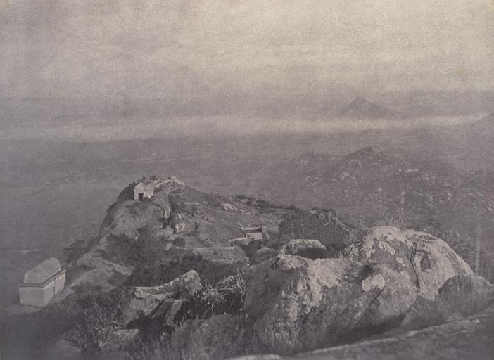 Keywords: View of the country looking N.N.W. from the top of Ryakotta Hill.jpg en This photograph of a view of the country as seen from top of the Ryakotta hill was taken by Linnaeus Tripe in 1858 and published in an album entitled 'Photographic Views of Ryakotta and other places in the Salem District with descriptive notes by J A C Boswell Esq M C S ' Madras 1858 View looking across the summit towards distant hills There is a magnificent view from the top of the Ryakotta Hill that will well repay the difficulty of ascent The whole country is spread out below as a map It is pleasing to see the large amount of cultivation with its artificial irrigation of tanks and channels all betokening the progress of industry Everything speaks in language that cannot be mistaken that a brighter day has already dawned on India Tripe was in charge of one of the battalions of the 12th Madras Native Infantry a regiment funded in 1824 and stationed in Madras In 1855 Tripe was commissioned to take photographs for the British East India Company and the Madras Presidency which resulted in six albums of which one is of Ryakotta 1858 http //www europeana eu/portal/search html query rayakota Creator Linnaeus Tripe PD-old-100 Photographs of India by Linnaeus Tripe 1858 photographs Historical images of Rayakottai Tamil Nadu in the 1850s Uploaded with UploadWizard |