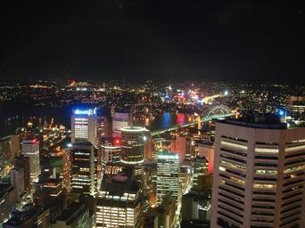 Keywords: View from AMP Tower Sydney.jpg The view from the Top of the AMP Tower Sydney It took this picture at night The Harbour Bridge is clearly visible 2005-08-30 own assumed Jkather Views from Centrepoint Tower