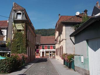 Keywords: View from Rue Reber towards Rue Wilson.JPG Photographed at Sainte-Marie-aux-Mines Alsace France own 2014-09-08 11 26 32 Alf van Beem CC-zero Streets in Sainte-Marie-aux-Mines