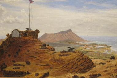 | Keywords: 'View of Honolulu from Punchbowl, oil on canvas painting by Ejler Andreas Jorgensen , 1875, Honolulu Academy of Arts.jpg 1875 Oil canvas cm Institution Honolulu Museum of Art Gallery 29 accession number 4954 1 object history credit line own PD-Art-100 DEFAULTSORT Jorgensen Ejler Andreas Hawaiian landscape paintings Landscape paintings in the Honolulu Museum of Art Jorgensen Oil paintings of landscapes Jorgensen Ejler Andreas Jorgensen Hawaii related oil paintings in the Honolulu Museum of Art Paintings of Honolulu Jorgensen Diamond Head in art Jorgensen History of Hawaii Jorgensen 19th-century European art in the Honolulu Museum of Art 19th-century paintings in the Honolulu Museum of Art Historical images of Honolulu Hawaii 1870s landscape paintings American paintings in the Honolulu Museum of Art 1875 oil on canvas paintings in the United States Views from Punchbowl |