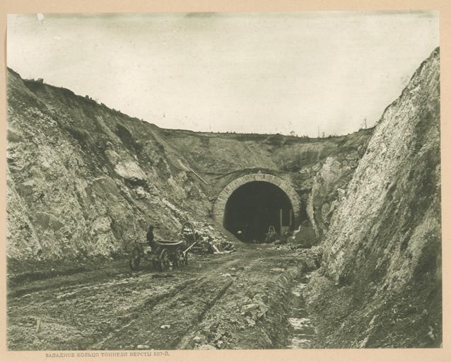 | Keywords: View inside of tunnel at the 587th verst of Amur Railway.jpg Western entrance to a tunnel on the Amur Railway 587th verst during construction Соо ужение западного по тала тоннеля на 587-ой ве сте Аму ской железной до оги Тепе ь это Уль учьинский Ке акский тоннель на 7344 км Забайкальской железной до оги http //rusneb ru/download/orel2/scan/albom/original/0242 jpg From the Russian National Library Российская госуда ственная библиотека early 20th century between 1908 and 1913 Unknown - publisher Art studio of Moscow comradeship Obrazovaniye осковского това ищества Об азование PD-old Trans-Siberian railway Rail tunnels in Russia |