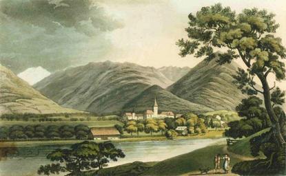 Keywords: View of Interlaken 1821.jpg en English Aquatint entitled View of Interlaken dated 1821 Antique aquatint illegible Published 1821 PD PD-Art Historical images of Interlaken Aquatint prints