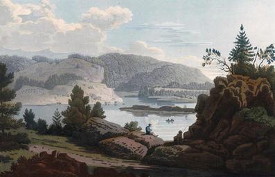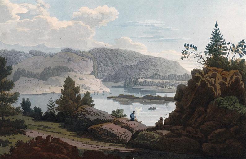 | Keywords: View near Dillengen (JW Edy plate 70).jpg Artwork Creator John William Edy en View near Dillengen No LXX VIEW NEAR DILLENGEN In perambulating the environs of Mos at almost every step the most agreeable views present themselves and particularly so on the side about Dillengen a small post house situated in the woods to the southward of the pleasant and delightful town of Mos From a long street which leads over the hills to the above place are obtained many glimpses of the lake Van Soe which enliven the progress of the traveller until he is closely embowered in a thick forest Having passed the house on the left and proceeded some distance towards the lake the wilds of the country begin to disappear and he finally arrives at its banks a little above which this view presents itself The town of Mos is situated somewhat to the left of the rock seen on that side of the picture on which was a small portion of grass cut; there is much barren rock on the east side towards the narrow passage described in the last view as entering between the mountains seen from this place whence the timber is conducted down to the saw-mills below the bridge at Mos From this entrance the greater part of the extensive waters of the Lake Van Soe are seen as far as the eye can reach About its margin and on the hills are many neat farm-houses ; and around them much cultivated land In the lake are many large and small islands which with the surrounding country partake the character of Italian scenery The people conduct their husbandry with skill and profit although on the old principles and gain credit for their breed of horses and cattle They collect considerable quantities of timber for exportation and produce much charcoal for the iron works Their fish are delicious and in great plenty salmon excepted on account of the saw-mills or because the altitude of the fall at Mos does not afford a proper leap or access to its fresh waters This loss may be easily dispensed with by the Norwegian in regard to the more gratifying sight of the numerous rafts of timber and barges continually floating down and destined to a sure market which so wholly occupies their commercial spirit as to make them totally indifferent to Van Soe and all its attendant beauties except in so far as it may be rendered subservient to their laudable purposes It is a question to be solved whether the procuring of timber or the burning of charcoal be the most productive employment pursued in the vicinity of Mos the great consumption of the latter commodity at the iron works being so considerable The entrance to the narrow pass of the waters to Mos is seen in front guarded by a low barren rock or bar which causes much trouble and inconvenience in blowing weather In the background are two of the mountains covered with forests forming precipitous terminations to the northward and gradually sloping off on the opposite sides to the great lake on the right This lake is a retreat for all sorts of wild fowl and its banks are free from noxious animals The little herds of cattle and sheep prowl about picking up their provender in security and peace while their bells tinkle in many reverberated echoes among the hills and rocks Collapse bottom http //urn nb no/URN NBN no-nb_digibok_2011072910001 Boydell's picturesque scenery of Norway London 1820 Plate no 70 p 353 in scanned copy no-nb_digibok_2011072910001 PD-Art-100 John William Edy Boydell's picturesque scenery of Norway Geography of Østfold |