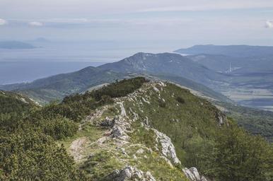 Keywords: view outlook outdoor nature landscape mountain panorama perspective forest vista tree croatia istria environment country scene travel scenery day bright light sunlight sky clouds