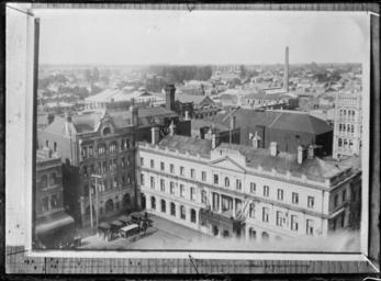| Keywords: blackandwhite monochrome photo border black and white View overlooking buildings in the north-eastern corner of Cathedral Square in Christchurch, including the Warners Hotel (1900-01) and the business premises of the Lyttelton Times (1902-03). Carriages are parked outside the hotel. Photograph taken circa 1910, by William Archer Price. Quantity: 1 b&w original negative(s). Physical Description: Dry plate glass negative View overlooking buildings in north-eastern corner of Cathedral Square, Christchurch. Price, William Archer, 1866-1948 :Collection of post card negatives. Ref: 1/2-000845-G. Alexander Turnbull Library, Wellington, New Zealand. natlib.govt.nz/records/23204377 View overlooking buildings in the north-eastern corner of Cathedral Square in Christchurch, including the Warners Hotel (1900-01) and the business premises of the Lyttelton Times (1902-03). Carriages are parked outside the hotel. Photograph taken circa 1910, by William Archer Price. Quantity: 1 b&w original negative(s). Physical Description: Dry plate glass negative View overlooking buildings in north-eastern corner of Cathedral Square, Christchurch. Price, William Archer, 1866-1948 :Collection of post card negatives. Ref: 1/2-000845-G. Alexander Turnbull Library, Wellington, New Zealand. natlib.govt.nz/records/23204377 |