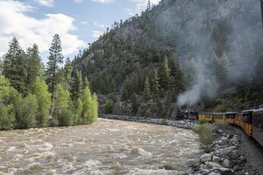 | Keywords: View of the rushing Animas River from the Durango & Silverton Narrow Gauge Railroad (D&SNG) train as it chugs (at 13 miles an hour) through the San Juan Forest in northern La Plata County, LCCN2015632952.tif 1 photograph digital tiff file color Notes Purchase; Carol M Highsmith Photography Inc ; 2015; DLC/PP-2015 068 ; Forms part of Gates Frontiers Fund Colorado Collection within the Carol M Highsmith Archive ; Credit line Gates Frontiers Fund Colorado Collection within the Carol M Highsmith Archive Library of Congress Prints and Photographs Division ; Title date and keywords based on information provided by the photographer ; The D SNG operates 45 2 miles of track between Durango and Silverton in southwest Colorado The route was originally opened in 1882 by the Denver Rio Grande Railway to transport silver and gold ore mined from the San Juan Mountains The line has run continuously since 1881 and some rolling stock dates to then It is now strictly a tourist and heritage line hauling passengers and is one of the few places in the United States that has seen continuous use of steam locomotives In March 1981 the Denver Rio Grande Western sold the line and the D SNG was formed Trains operate from Durango just 26 miles into the mountains in winter months and the full 45 miles to Silverton during warmer months 2015 Creator Carol M Highsmith Library of Congress Catalog http //lccn loc gov/2015632952 Image download https //cdn loc gov/master/pnp/highsm/32900/32937a tif Original url http //hdl loc gov/loc pnp/highsm 32937 No known restrictions on publication LOC-image highsm 32937 37 31 9461 0 N 107 46 7122 0 W alt 2262_source exif_heading PD-Highsmith Images uploaded by Fæ Gates Frontiers Fund Colorado Collection within the Carol M Highsmith Archive Durango and Silverton Narrow Gauge Railroad Animas River Gates Frontiers Fund Colorado Collection within the Carol M Highsmith Archive Library of Congress Prints and Photographs Division Photographs by Carol M Highsmith |