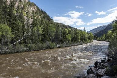 | Keywords: View of the rushing Animas River from the Durango & Silverton Narrow Gauge Railroad (D&SNG) train as it chugs (at 13 miles an hour) through the San Juan Forest in northern La Plata County, LCCN2015632950.tif 1 photograph digital tiff file color Notes Purchase; Carol M Highsmith Photography Inc ; 2015; DLC/PP-2015 068 ; Forms part of Gates Frontiers Fund Colorado Collection within the Carol M Highsmith Archive ; Credit line Gates Frontiers Fund Colorado Collection within the Carol M Highsmith Archive Library of Congress Prints and Photographs Division ; Title date and keywords based on information provided by the photographer ; The D SNG operates 45 2 miles of track between Durango and Silverton in southwest Colorado The route was originally opened in 1882 by the Denver Rio Grande Railway to transport silver and gold ore mined from the San Juan Mountains The line has run continuously since 1881 and some rolling stock dates to then It is now strictly a tourist and heritage line hauling passengers and is one of the few places in the United States that has seen continuous use of steam locomotives In March 1981 the Denver Rio Grande Western sold the line and the D SNG was formed Trains operate from Durango just 26 miles into the mountains in winter months and the full 45 miles to Silverton during warmer months 2015 Creator Carol M Highsmith Library of Congress Catalog http //lccn loc gov/2015632950 Image download https //cdn loc gov/master/pnp/highsm/32900/32935a tif Original url http //hdl loc gov/loc pnp/highsm 32935 No known restrictions on publication LOC-image highsm 32935 37 31 2307 0 N 107 47 023 0 W alt 0_source exif_heading PD-Highsmith Images uploaded by Fæ Gates Frontiers Fund Colorado Collection within the Carol M Highsmith Archive Durango and Silverton Narrow Gauge Railroad Animas River Gates Frontiers Fund Colorado Collection within the Carol M Highsmith Archive Library of Congress Prints and Photographs Division Photographs by Carol M Highsmith |