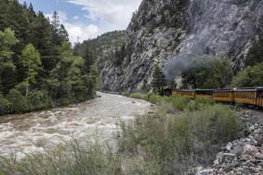| Keywords: View of the rushing Animas River from the Durango & Silverton Narrow Gauge Railroad (D&SNG) train as it chugs (at 13 miles an hour) through the San Juan Forest in northern La Plata County, LCCN2015632958.tif 1 photograph digital tiff file color Notes Purchase; Carol M Highsmith Photography Inc ; 2015; DLC/PP-2015 068 ; Forms part of Gates Frontiers Fund Colorado Collection within the Carol M Highsmith Archive ; Credit line Gates Frontiers Fund Colorado Collection within the Carol M Highsmith Archive Library of Congress Prints and Photographs Division ; Title date and keywords based on information provided by the photographer ; The D SNG operates 45 2 miles of track between Durango and Silverton in southwest Colorado The route was originally opened in 1882 by the Denver Rio Grande Railway to transport silver and gold ore mined from the San Juan Mountains The line has run continuously since 1881 and some rolling stock dates to then It is now strictly a tourist and heritage line hauling passengers and is one of the few places in the United States that has seen continuous use of steam locomotives In March 1981 the Denver Rio Grande Western sold the line and the D SNG was formed Trains operate from Durango just 26 miles into the mountains in winter months and the full 45 miles to Silverton during warmer months 2015 Creator Carol M Highsmith Library of Congress Catalog http //lccn loc gov/2015632958 Image download https //cdn loc gov/master/pnp/highsm/32900/32943a tif Original url http //hdl loc gov/loc pnp/highsm 32943 No known restrictions on publication LOC-image highsm 32943 PD-Highsmith Images uploaded by Fæ Gates Frontiers Fund Colorado Collection within the Carol M Highsmith Archive Durango and Silverton Narrow Gauge Railroad Animas River Gates Frontiers Fund Colorado Collection within the Carol M Highsmith Archive Library of Congress Prints and Photographs Division Photographs by Carol M Highsmith |