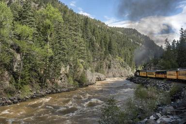 | Keywords: View of the rushing Animas River from the Durango & Silverton Narrow Gauge Railroad (D&SNG) train as it chugs (at 13 miles an hour) through the San Juan Forest in northern La Plata County, LCCN2015632953.tif 1 photograph digital tiff file color Notes Purchase; Carol M Highsmith Photography Inc ; 2015; DLC/PP-2015 068 ; Forms part of Gates Frontiers Fund Colorado Collection within the Carol M Highsmith Archive ; Credit line Gates Frontiers Fund Colorado Collection within the Carol M Highsmith Archive Library of Congress Prints and Photographs Division ; Title date and keywords based on information provided by the photographer ; The D SNG operates 45 2 miles of track between Durango and Silverton in southwest Colorado The route was originally opened in 1882 by the Denver Rio Grande Railway to transport silver and gold ore mined from the San Juan Mountains The line has run continuously since 1881 and some rolling stock dates to then It is now strictly a tourist and heritage line hauling passengers and is one of the few places in the United States that has seen continuous use of steam locomotives In March 1981 the Denver Rio Grande Western sold the line and the D SNG was formed Trains operate from Durango just 26 miles into the mountains in winter months and the full 45 miles to Silverton during warmer months 2015 Creator Carol M Highsmith Library of Congress Catalog http //lccn loc gov/2015632953 Image download https //cdn loc gov/master/pnp/highsm/32900/32938a tif Original url http //hdl loc gov/loc pnp/highsm 32938 No known restrictions on publication LOC-image highsm 32938 PD-Highsmith Images uploaded by Fæ Gates Frontiers Fund Colorado Collection within the Carol M Highsmith Archive Durango and Silverton Narrow Gauge Railroad Animas River Gates Frontiers Fund Colorado Collection within the Carol M Highsmith Archive Library of Congress Prints and Photographs Division Photographs by Carol M Highsmith |