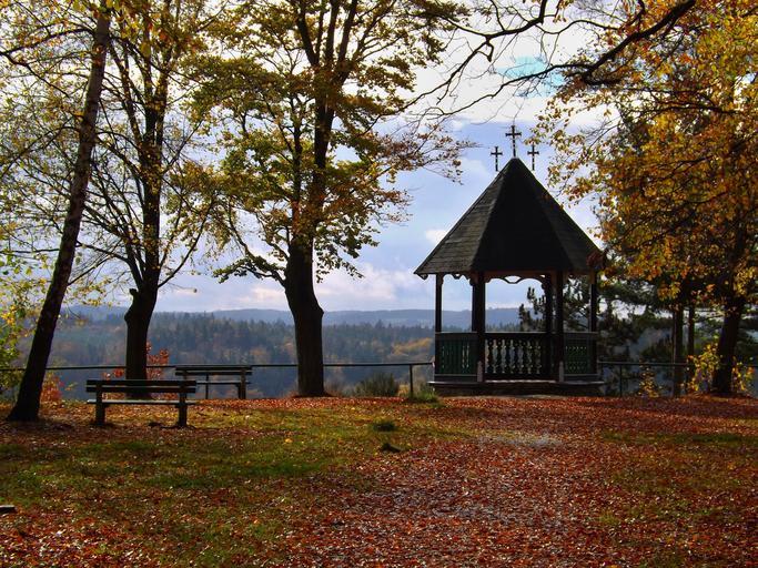 Keywords: view summer-house autumn nature foliage trees path landscape forest