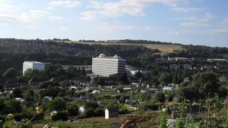 | Keywords: View towards Moulsecoomb and Hollingdean from Canfield Close, near Coombe Road, Brighton (July 2010).jpg Views of Brighton and Hove 5 This view looks north-northwestwards from Canfield Close a residential cul-de-sac on the east side of the Lewes Road valley in the Bear Road area of Brighton Features click to enlarge The most prominent buildings are the Watts Building left; 50 844458 -0 119579 and Cockroft Building centre; 50 845475 -0 118216 of the University of Brighton The flats in the right midground are on Highbrook Close and Ryelands Drive in Moulsecoomb They are in front of but some way below the East Coastway railway line just outside Moulsecoomb station The low buildings above the flats are industrial and commercial premises in Home Farm Business Park 50 849 -0 116 Behind that is Wild Park with a particularly prominent footpath which leads up to Hollingbury Fort and eventually up to the Hollingbury housing estate The houses in the left background are the later parts of the Hollingdean housing estate circa 1970 to 1980 such as Isfield Road Lambourne Road Wolverstone Drive and Uplands Road The allotments in the foreground separate the Bear Road residential area from the Bevendean estate Lewes Road is at a much lower level in the valley and is completely hidden but it runs left to right across the middle of the picture 50 841225 -0 115744 own 2010-07-31 The Voice of Hassocks Views of Brighton and Hove July 2010 in England Cc-zero ImageNote 1 238 644 272 203 2500 1400 2 University of Brighton Watts Building ImageNoteEnd 1 ImageNote 2 988 588 419 266 2500 1400 2 University of Brighton Cockroft Building ImageNoteEnd 2 ImageNote 3 1678 603 816 103 2500 1400 2 Home Farm Business Park Moulsecoomb ImageNoteEnd 3 |