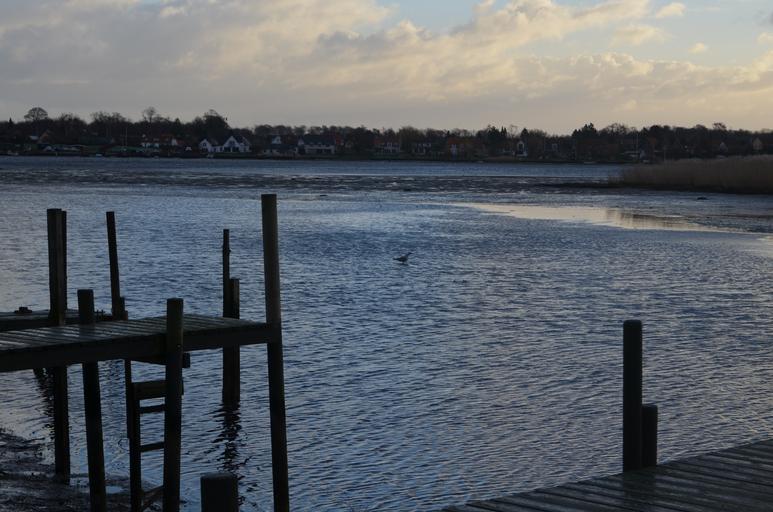 Keywords: view winter sea evening pier wood lake water dusk