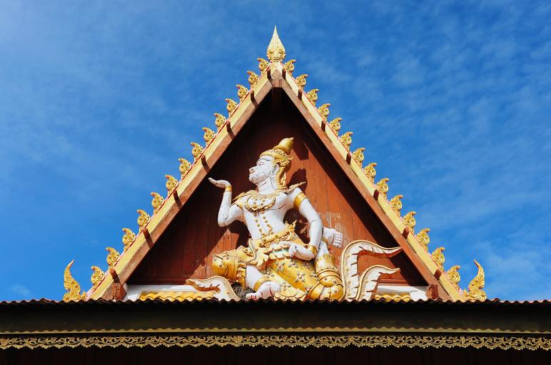 Keywords: viewpoint architecture art asia beautiful azure buddha buddhism buddhist building carving decorate design of outer gables of the old gold east peace religion the snake side roof sky statue the structure the format sukhothai thailand temple