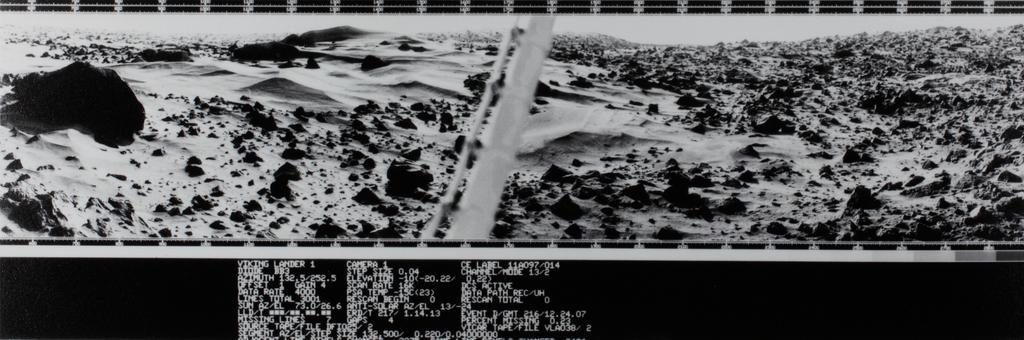Keywords: blackandwhite outdoor black and white August 3, 1976. The surface of Mars. The meteorological boom supporting the lander's miniature weather station divides the photograph Repository: San Diego Air and Space Museum Archive August 3, 1976. The surface of Mars. The meteorological boom supporting the lander's miniature weather station divides the photograph Repository: San Diego Air and Space Museum Archive |