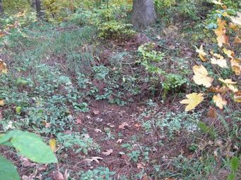 Keywords: Vilémov 3.jpg cs Zaniklá středověká osada Vilémov - prohlubeň po sklepu nebo studni Vlastní fotografie John commons 10/2009 Zaniklá středověká osada Vilémov