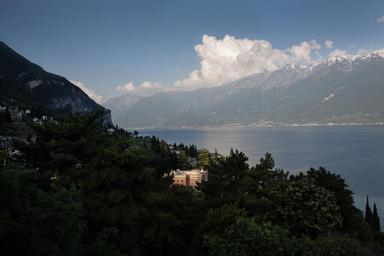 Keywords: villa castle dream home hotel garda lake italy panorama good view landscape mountains rock clouds recovery holiday outlook trees park evening sun shadow