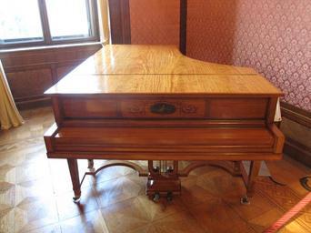 | Keywords: Villa Huegel Essen 28.jpg Flügel aus dem Jahr 1905 Zitronenholzfurnier mit Einlegearbeiten und Bemalungen Der Flügel im Empire-Stil wurde um 1905 von dem Hof-Piano-Fabrikanten Rud Ibach Sohn aus Barmen für das Musikzimmer der Familie Krupp in Villa Hügel angefertigt Den Entwurf für das Instrumentengehäuse lieferte die Mainzer Hofmöbelfabrik A Bembé In drei gemalten ovalen Medaillons sind Allegorien der Musik dargestellt Frauengestalten in fließenden Gewändern tragen als Attribute der Musik verschiedene Instrumente Rechte Seite Frauengestalt mit Tamburin und geflügelter Putto mit Laute Rückseite Frauengestalt mit Lyra und Schwan Linke Seite Frauengestalt mit Posaune und Putto mit Triangel Der Flügel wurde der Alfried Krupp von Bohlen und Halbach-Stiftung im Jahre 1997 von den letzten Eigentümern Ilse und Raimund Kluber Darmstadt übereignet Die Stiftung ermöglichte 1998 die umfassende Restaurierung des Instrumentes own 2011-03-02 11 26 24 Gryffindor Interior of the Villa Hügel Rud Ibach Sohn pianos Bembé |