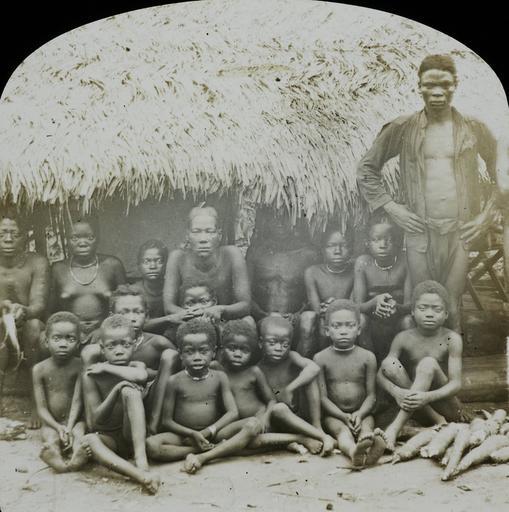 :*Black and white lantern slide showing a group of villagers in the colonial [[ Category Belgian Congo|Belgian Congo]] (present day [[Democratic Republic of the Congo]]).