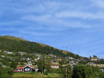 Keywords: village slope homes settlement summer ski lift norway green houses on hillside landscape hidden disguised