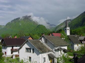 Keywords: village slovenia houses mountains hill city house mountain sky church nature landscape