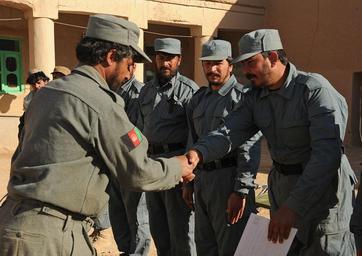 | Keywords: Village Veterinary Outreach Program-Afghanistan Local Police student graduation 111202-N-UD522-137.jpg en An Afghan National Police instructor shakes an Afghan Local Police recruit's hand before handing him his graduation certificate in Gizab district Uruzgan province Dec 2 ANP instructors taught ALP recruits during a three week course on basic weapon handling improvised explosive device awareness and patrol movements 2011-12-02 Petty Officer 2nd Class David Brandenburg https //www dvidshub net/image/494366 111202-N-UD522-137 2011-12-03 09 10 GIZAB DISTRICT AF PD-USGov-Military-Navy Urozgan Province Afghan Local Police Images from DoD uploaded by Fæ |