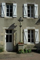Keywords: village window shutter cross facade shadow light summer burgundy