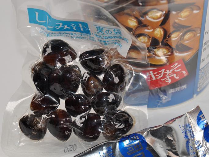 | Keywords: Villorita cyprinoides 003 in an instant miso soup.JPG Black clams Villorita cyprinoides Gray 1825 from Kerala used for instant miso soup Namamisozui Shijimi-jiru Asahimatsu Foods Co LTD Japan インドケーララ州産 Villorita cyprinoides Gray 1825 を用いたインスタント味噌汁(旭 食品 生み ずい しじみ汁) 実物 投稿 2013-11-07 thumb left Villorita cyprinoides Miso soup |