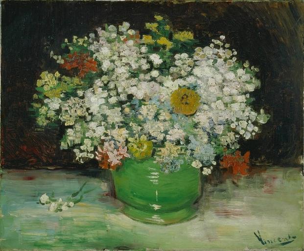 | Keywords: Vincent van Gogh - Zinnias et autres fleurs dans un vase, 1886 (Musée des beaux-arts du Canada).jpg Artwork Creator Vincent van Gogh Paris summer 1886 oil canvas cm 50 2 61 Institution National Gallery of Canada accession number 5808 http //www gallery ca/fr/voir/collections/artwork php mkey 3292 Musée des beaux-arts du Canada Ottawa<br/>http //www vangoghgallery com/catalog/Painting/688/Vase 20with 20Zinnias 20and 20Other 20Flowers html vangoghgallery com object history langSwitch Purchased Acheté en 1951 credit line exhibition history Vincent lower right signature Van Gogh catalogues 251 1142 109071~11921 PD-old-100 DEFAULTSORT Van Gogh 1886 Vase with Zinnias and Other Flowers National Gallery of Canada Zinnias et géraniums dans un vase F251 |