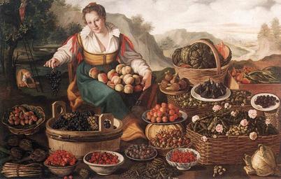 | Keywords: Vincenzo Campi - The Fruit Seller.jpg Artwork Q3753811 Creator Vincenzo Campi ca 1580 Oil on canvas size cm 145 215 Institution Pinacoteca di Brera Milan object history credit line accession number http //www wga hu/frames-e html /html/c/campi/vincenzo/1fruit html PD-old-100 Vincenzo Campi Asparagus in art Fruit vendors in art 1580s paintings from Italy 1580s fashion 16th-century women looking at viewer in art Paintings of women with fruit baskets 16th-century trade markets shops and merchants Paintings of vegetables 16th-century paintings location missing Paintings of sitting women Paintings of baskets Images from Web Gallery of Art |