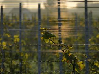 Keywords: vineyard light vines sea mirroring morning summer plant spring beautiful landscape mood shimmer abstract wires