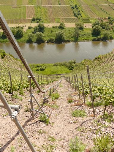Keywords: vineyard steep slope winegrowing wine steep location mosel cask of mosel wine slate vines terraces wine growing area steep sloping downhill