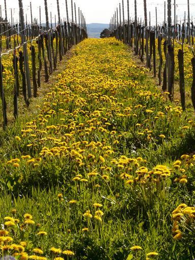 Keywords: vineyard winegrowing vine plantation post mountain meadow dandelion