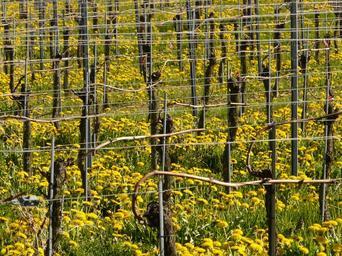 Keywords: vineyard winegrowing vine plantation post mountain meadow dandelion