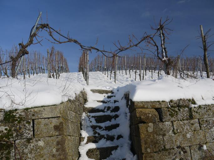 Keywords: vineyard winter snow wintry dream day white cold rest snowy landscape slope sun sunny winter mood winegrowing mood vines vine wine nature agriculture baden württemberg region heilbronn frost sunshine silent walk stairs