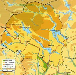 Keywords: Vinje map.jpg en Map of Vinje municipality Norway Own Jensens 2008-12-07 Maps of Telemark Vinje