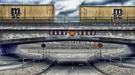 Keywords: vinslov sweden road underpass train cars railroad hdr outside signs