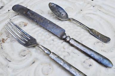 Keywords: vintage antique silverware spoon knife fork table old home decor silver white