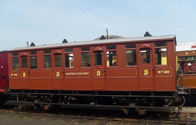 Keywords: Vintage Carriage Set F DR 100.JPG District Railway Third Class four wheeler No 100 Own 2008-05-03 Peter Skuce Rolling stock of the Kent and East Sussex Railway London Underground coaches