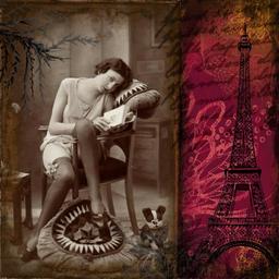 Keywords: vintage collage digital art flapper lady floral decorative poster wallpaper woman sexy seductive eiffel tower french france paris design twenties romantic european 20s